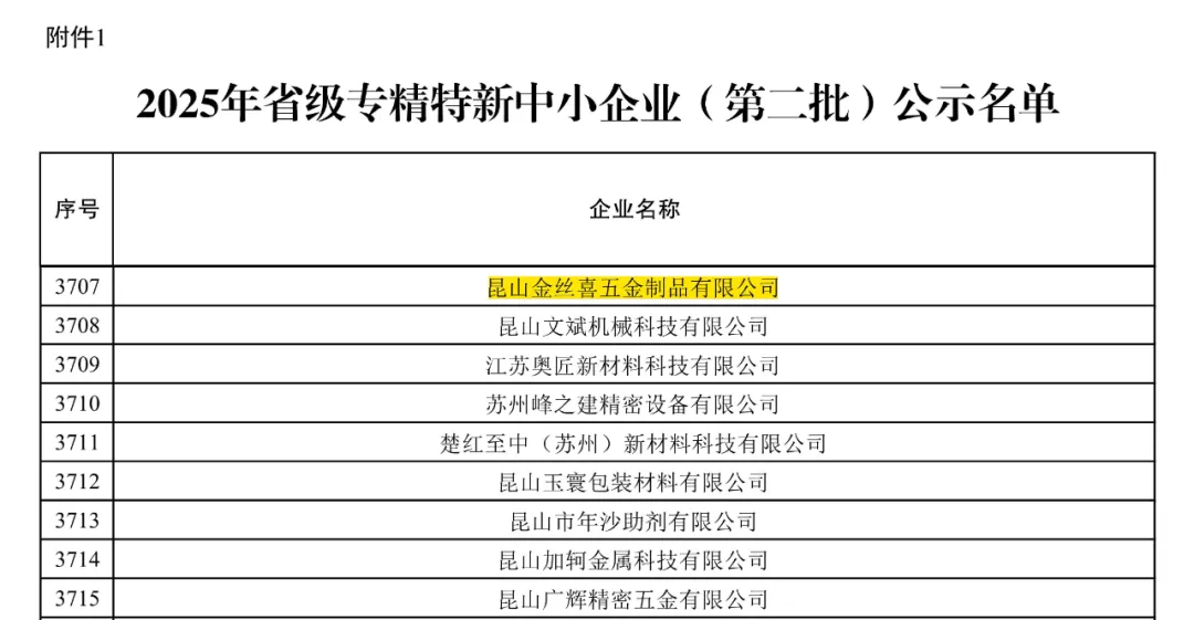 Slovenski Неодамна, Одделот за индустрија и информатичка технологија на провинцијата Џиангсу официјално ја објави најновата серија на специјализирани и софистицирани мали и средни претпријатија од Џиангсу признати за 2025 година.