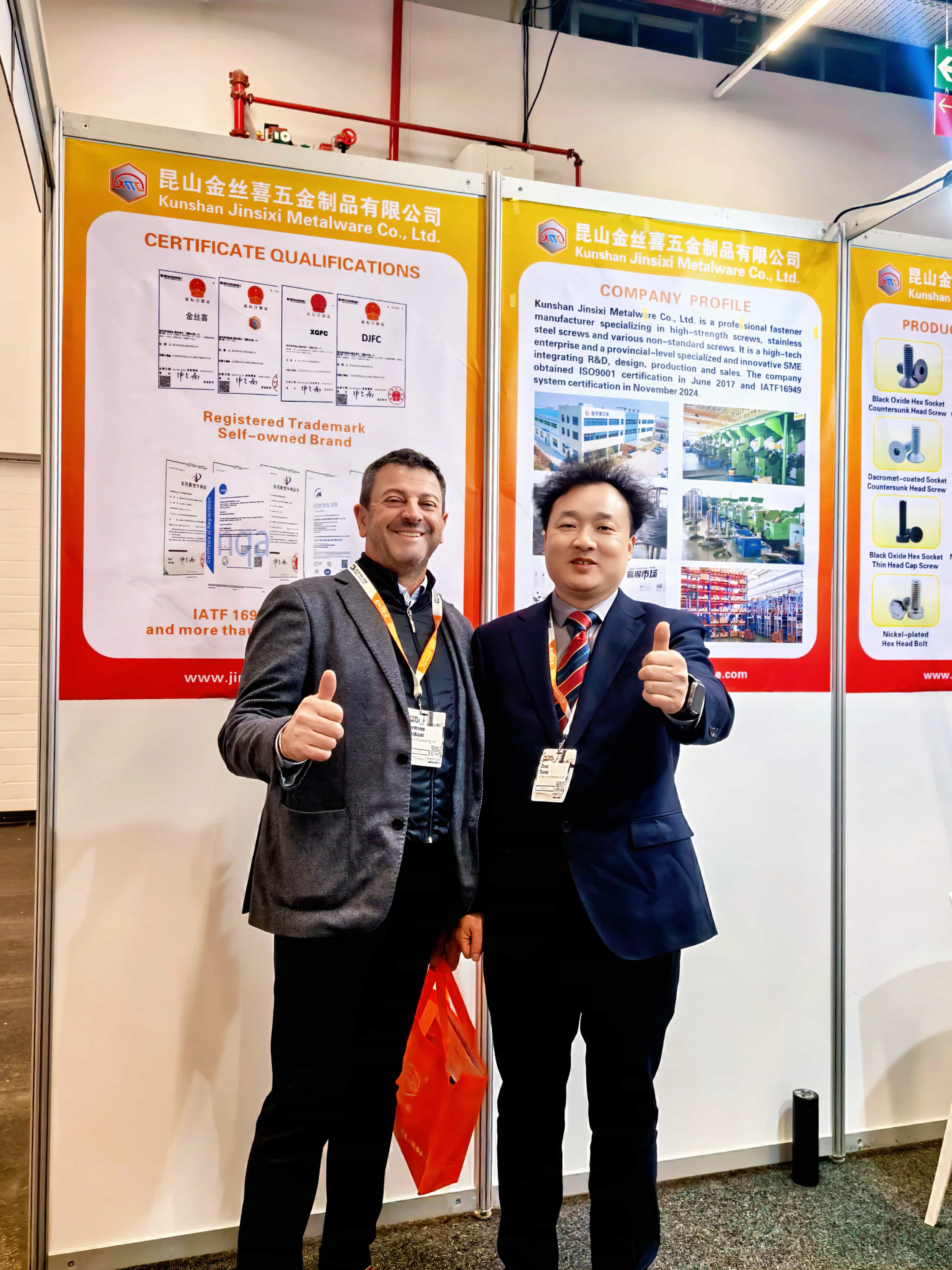 За целосно да ги покаже своите сеопфатни силни страни,Џинсиксипостави внимателно дизајниран штанд, истакнувајќи ја неговата палета нашестоаголен штекеришестоаголна главапроизводи со различни процеси на површинска обработка како што се црн оксид, никелизиран, цинк-обложен и обложен со Дакромет. Овие производи се во согласност со главните стандарди, вклучувајќи ги GB, DIN, ANSI, JIS и ISO и се направени од материјали како што се нерѓосувачки челик, средно јаглероден челик и легиран челик. Сите производи строго се придржуваат до системите за управување со квалитет ISO 9001 и IATF 16949, осигурувајќи дека секоја завртка и завртка обезбедува сигурни и стабилни механички перформанси.